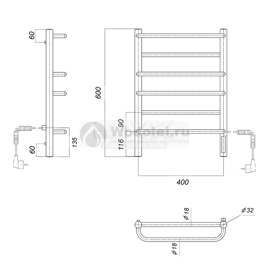 Полотенцесушитель электрический Domoterm DMT Орфей П6 400x600 БЕЛ EK R