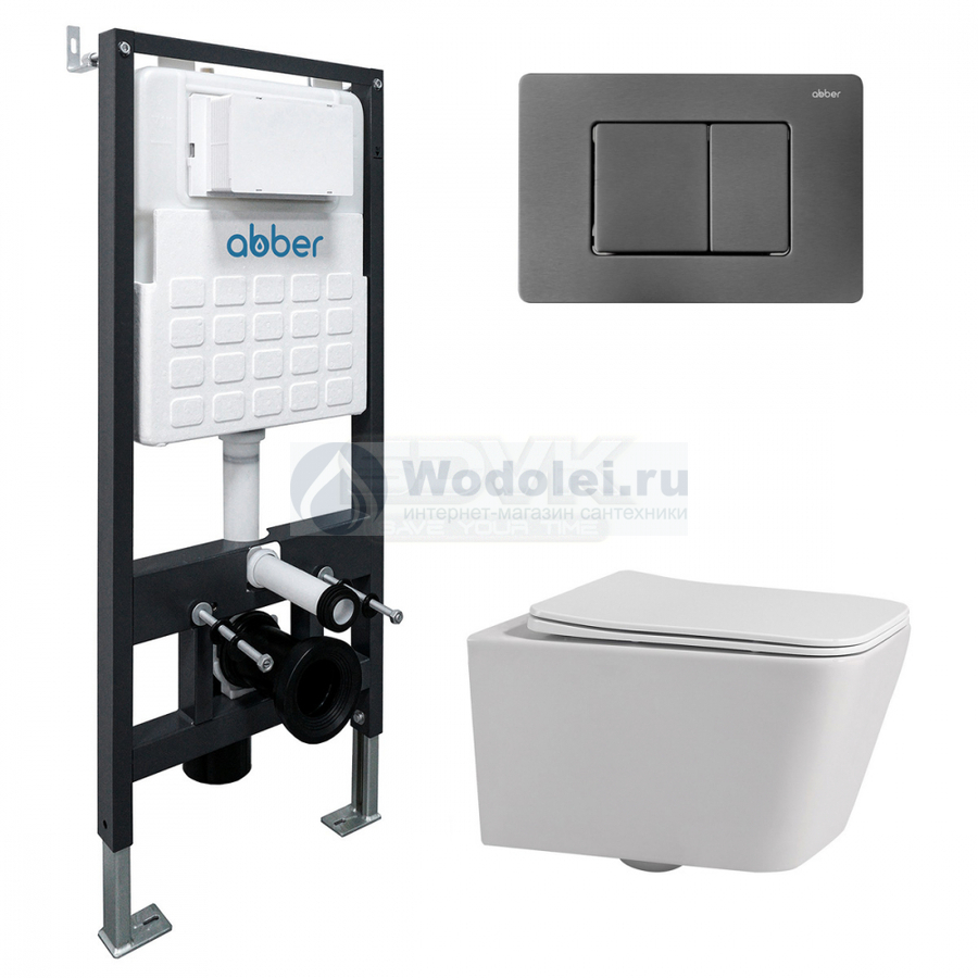 Комплект подвесного унитаза с инсталляцией Abber Rechteck AC1201-AC0105-AC0120NG безободковый, белый, кнопка никель