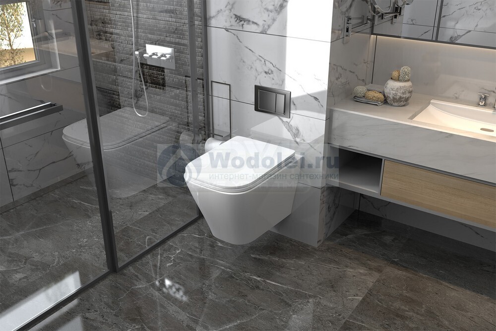 Отзывы о Abber Rechteck AC1201-AC0105-AC0121 безободковый, крышка с микролифтом, белый, кнопка хром