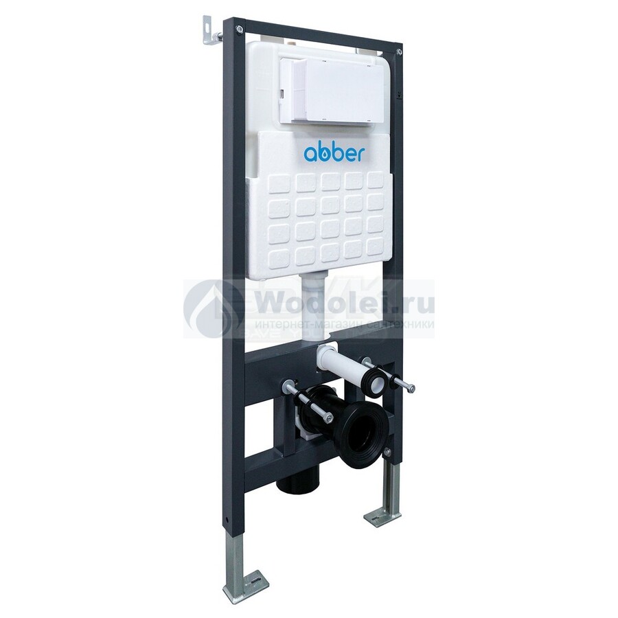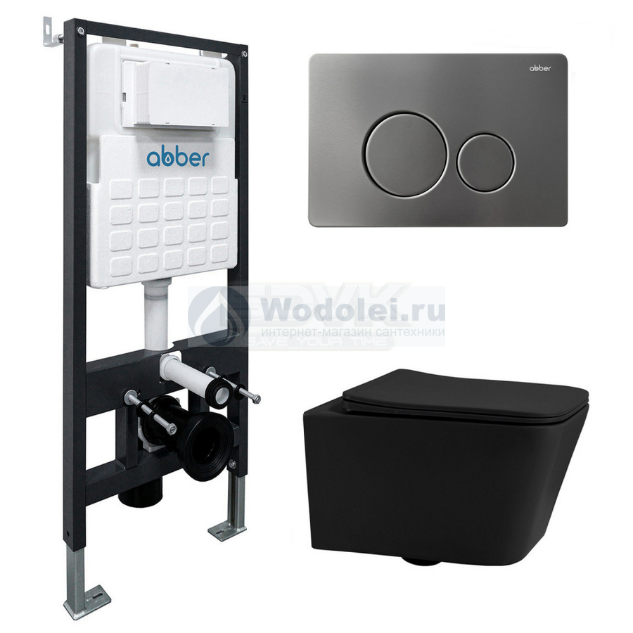 Комплект подвесного унитаза с инсталляцией Abber Rechteck AC1201MB-AC0105-AC0121MCH безободковый, черный матовый, кнопка хром