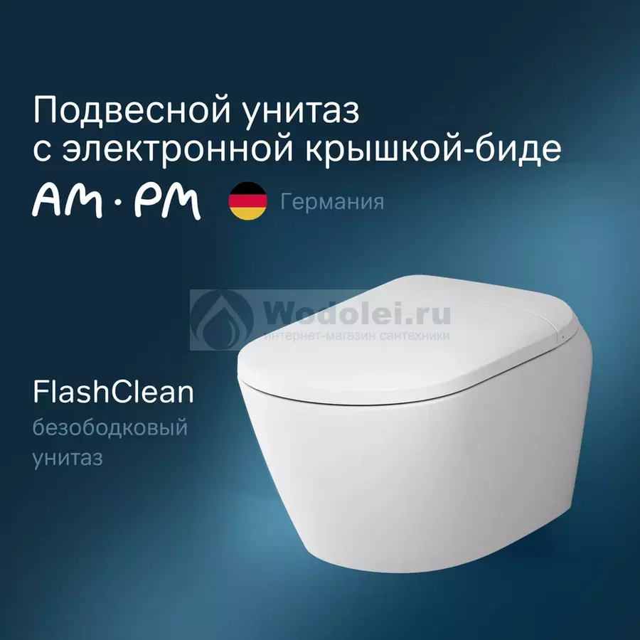 Купить подвесной унитаз Am.Pm Sensation CCC301700SC белый, с крышкой микролифт Германия горизонтальное (в стену) выход в Москве в магазине Водолей удобно с доставкой и установкой. У нас гарантированно низкая цена: белый унитаз-биде Am.Pm Sensation CCC301700SC белый, с крышкой микролифт (сантехнический фарфор) стоит 216890 руб. Если нашли дешевле – просите скидку!