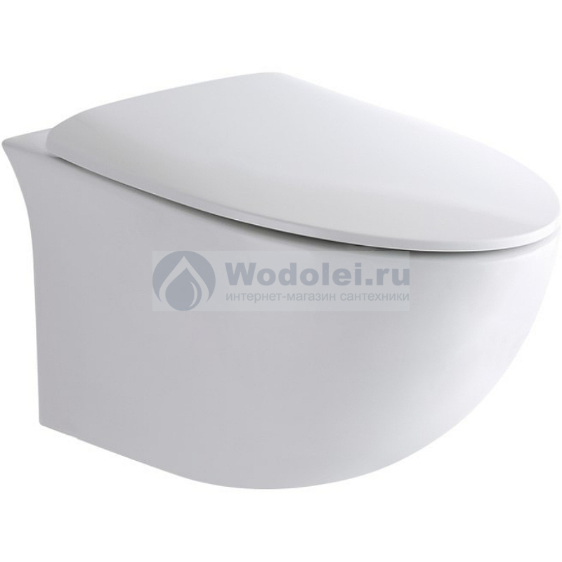 Унитаз подвесной CeramaLux 2297 безободковый, с крышкой микролифт, белый глянцевый