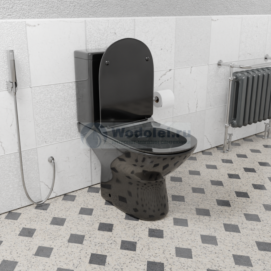 Купить напольный унитаз CeramaLux 9126-18 с крышкой микролифт, черный глянцевый горизонтальное (в стену) выход в Москве в интернет-магазине Wodolei удобно с доставкой и установкой. У нас гарантированно низкая цена: черный унитаз напольный CeramaLux 9126-18 с крышкой микролифт, черный глянцевый (фаянс) за 13230 руб. Если нашли дешевле – просите скидку!