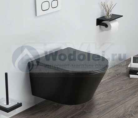 Унитаз подвесной CeramaLux B2330-1MB черно-матовый, с крышкой микролифт