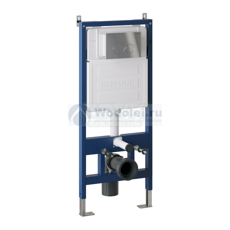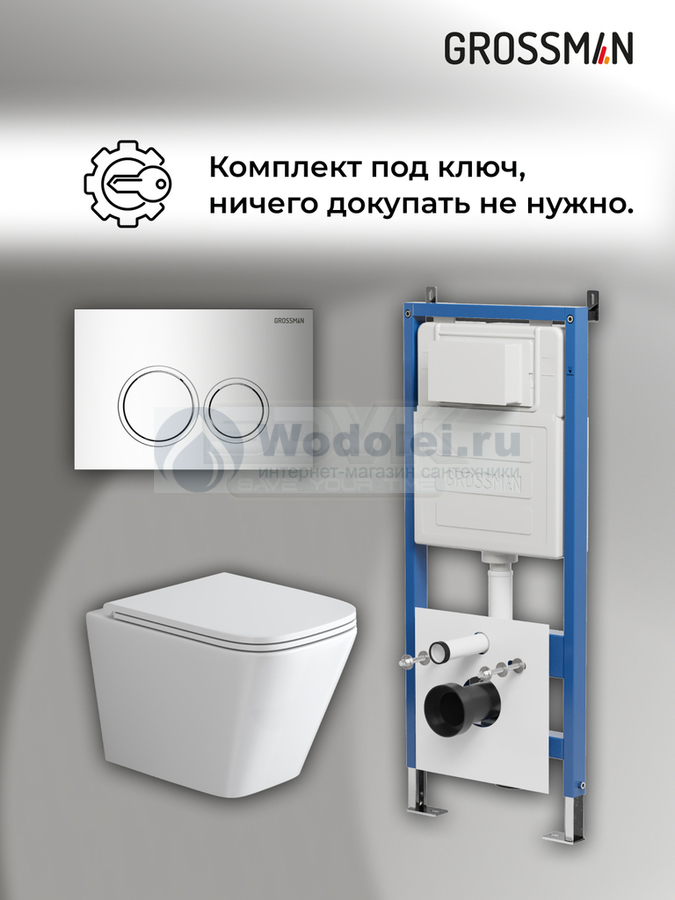 Комплект Унитаз подвесной с инсталляцией Grossman Galaxy 97.4479SQ.01.100 безободковый, белый+ Кнопка смыва хром глянцевый