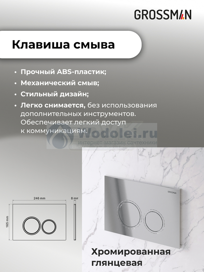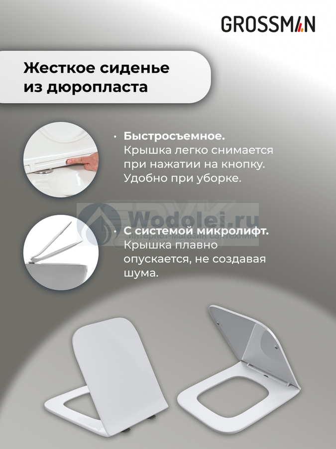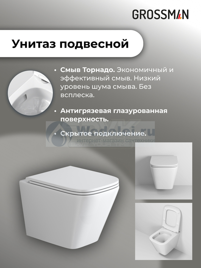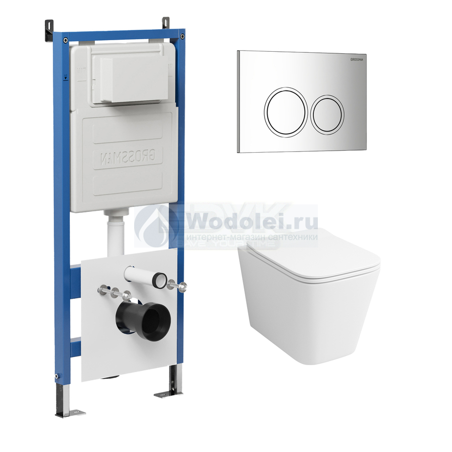 Купить подвесной унитаз Grossman Galaxy 97.4479SQ.01.100 безободковый, белый+ Кнопка смыва хром глянцевый Китай горизонтальное (в стену) выход в Москве в интернет-магазине Wodolei удобно с доставкой и установкой. У нас установлена самая доступная цена: белый комплект Унитаз подвесной с инсталляцией Grossman Galaxy 97.4479SQ.01.100 безободковый, белый+ Кнопка смыва хром глянцевый (фаянс) стоит 22344 руб. Если нашли дешевле – просите скидку!