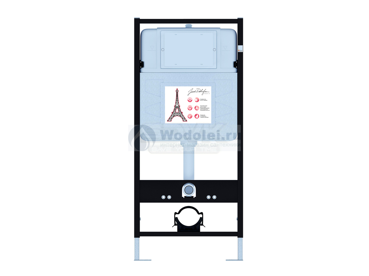 Комплект подвесного унитаза с инсталляцией Jacob Delafon Struktura EDE103-BL безободковый, сиденье микролифт, белый, кнопка черная