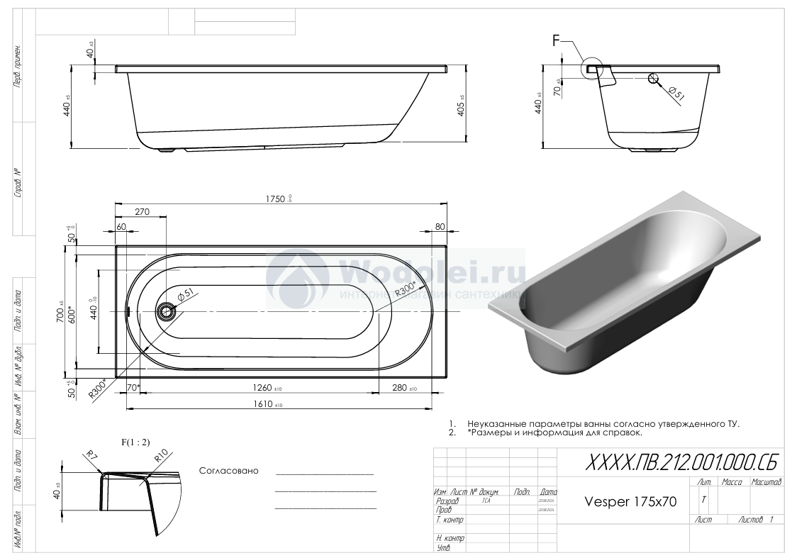 Акриловая ванна 1MarKa Vesper 180x70 01весп1870 белая