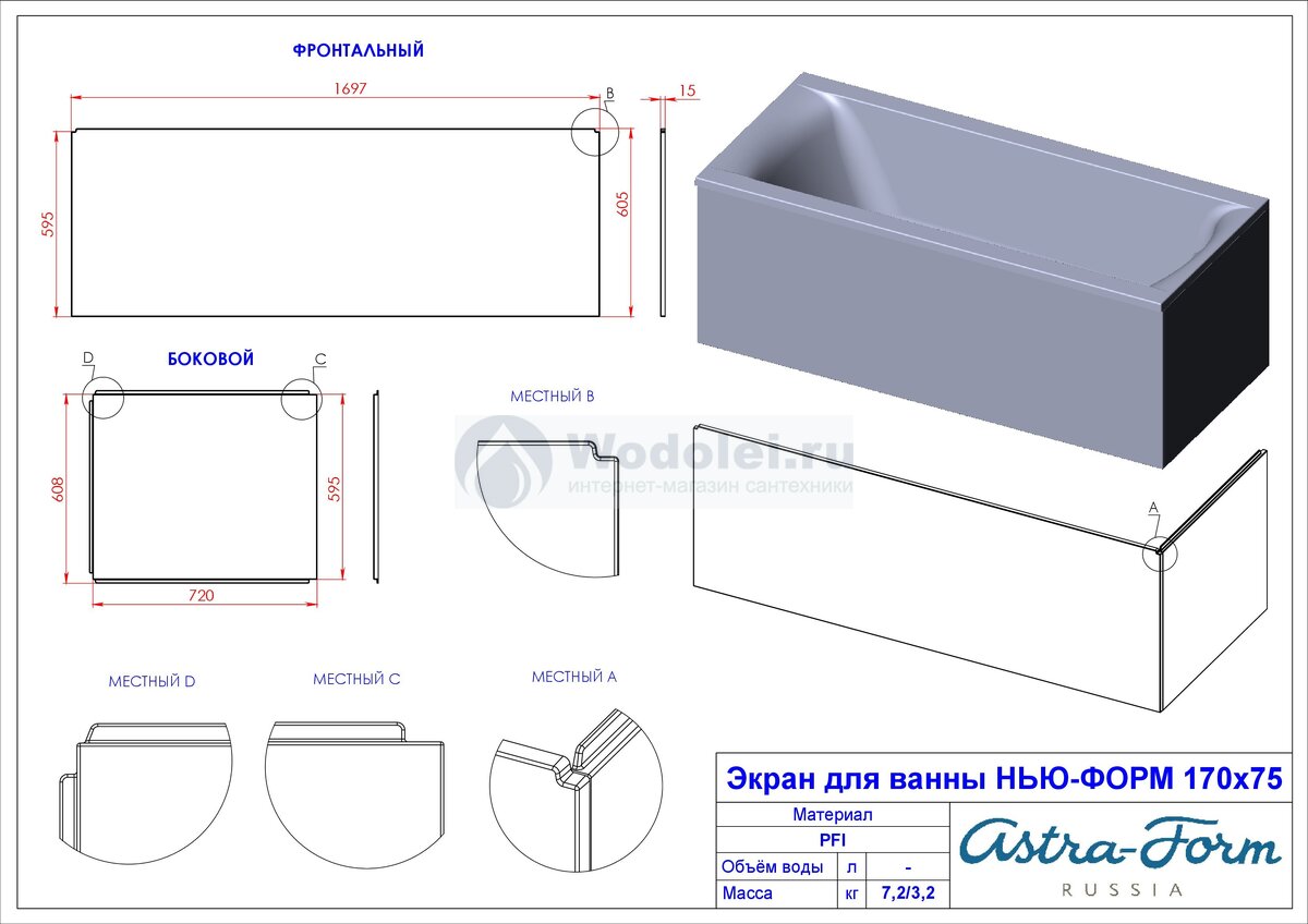 Обрезка экрана ванны Астра-Форм 00050000 00050000 |