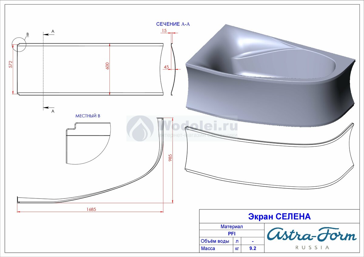 Купить ванну Астра-Форм Селена 170x100 01010040 правая, белая глянцевая материал: литьевой мрамор в Москве в интернет-магазине Wodolei удобно с доставкой и установкой. У нас гарантированно выгодная цена: ванна из литьевого мрамора Астра-Форм Селена 170x100 01010040 правая, белая глянцевая за 73300 руб. Если нашли дешевле – дадим скидку.