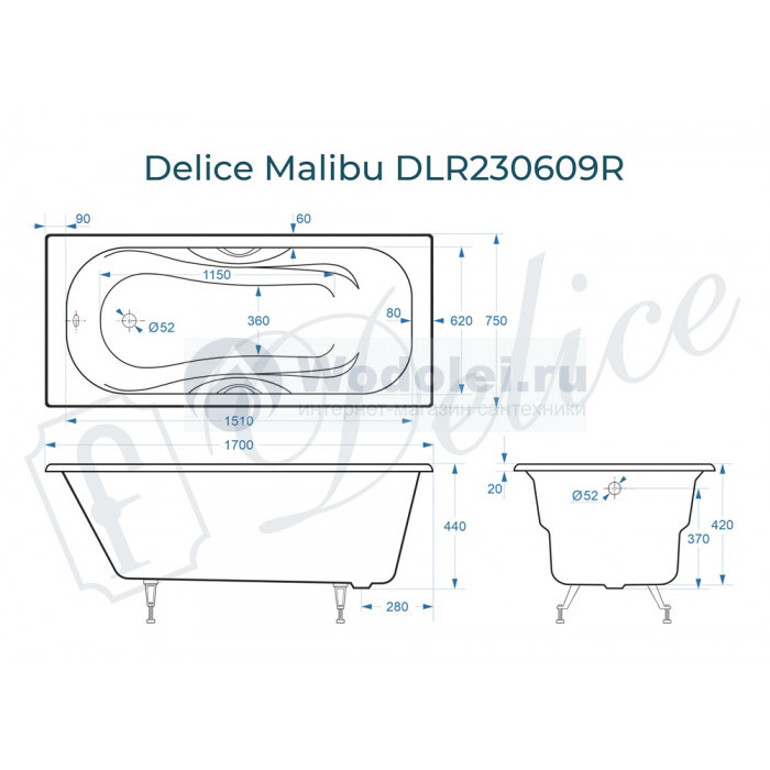 Купить ванну Delice Malibu 170x75 DLR230609R с отверстиями под ручки, белая материал: чугун в Москве в магазине Wodolei удобно с доставкой и установкой. У нас установлена самая привлекательная цена: чугунная ванна Delice Malibu 170x75 DLR230609R с отверстиями под ручки, белая за 77420 руб. Если нашли дешевле – просите скидку.