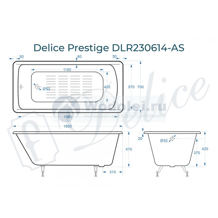 Отзывы о Delice Prestige 160х70 DLR230614-AS с антискользящим покрытием, белая