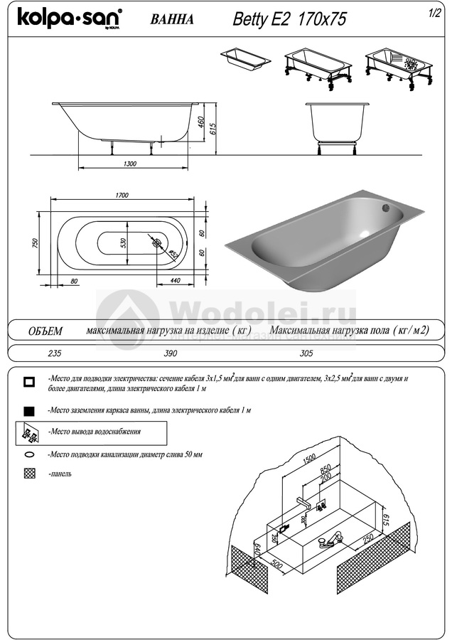 Отзывы о Kolpa-San Betty E2 170x75 567790 встраиваемая, белая
