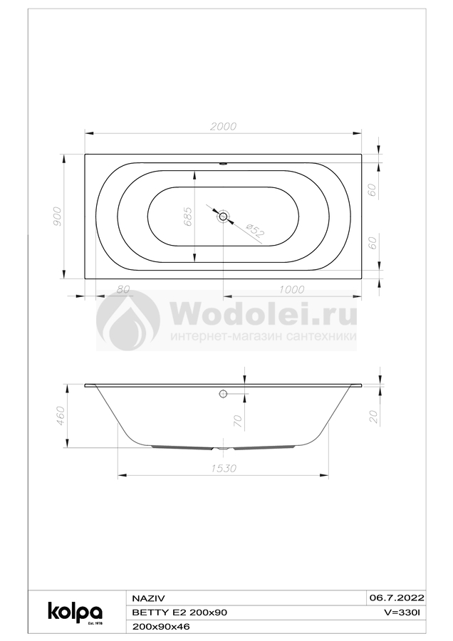Отзывы о Kolpa-San Betty E2 200x90 568190 встраиваемая, белая