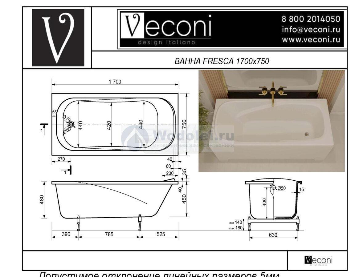 Отзывы о Veconi Fresca 170x75 FRS17075BM черная матовая