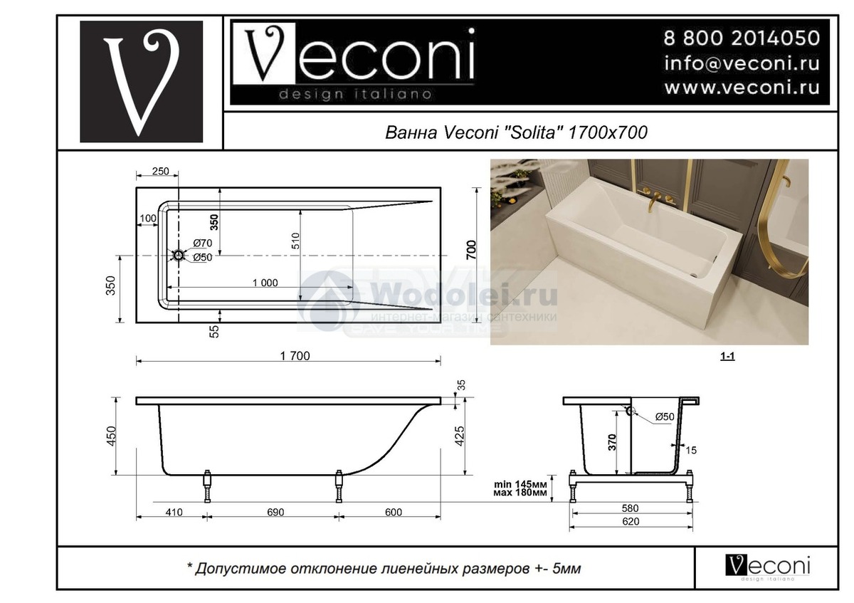 Отзывы о Veconi Solita 170x70 SLT17070BM черная матовая